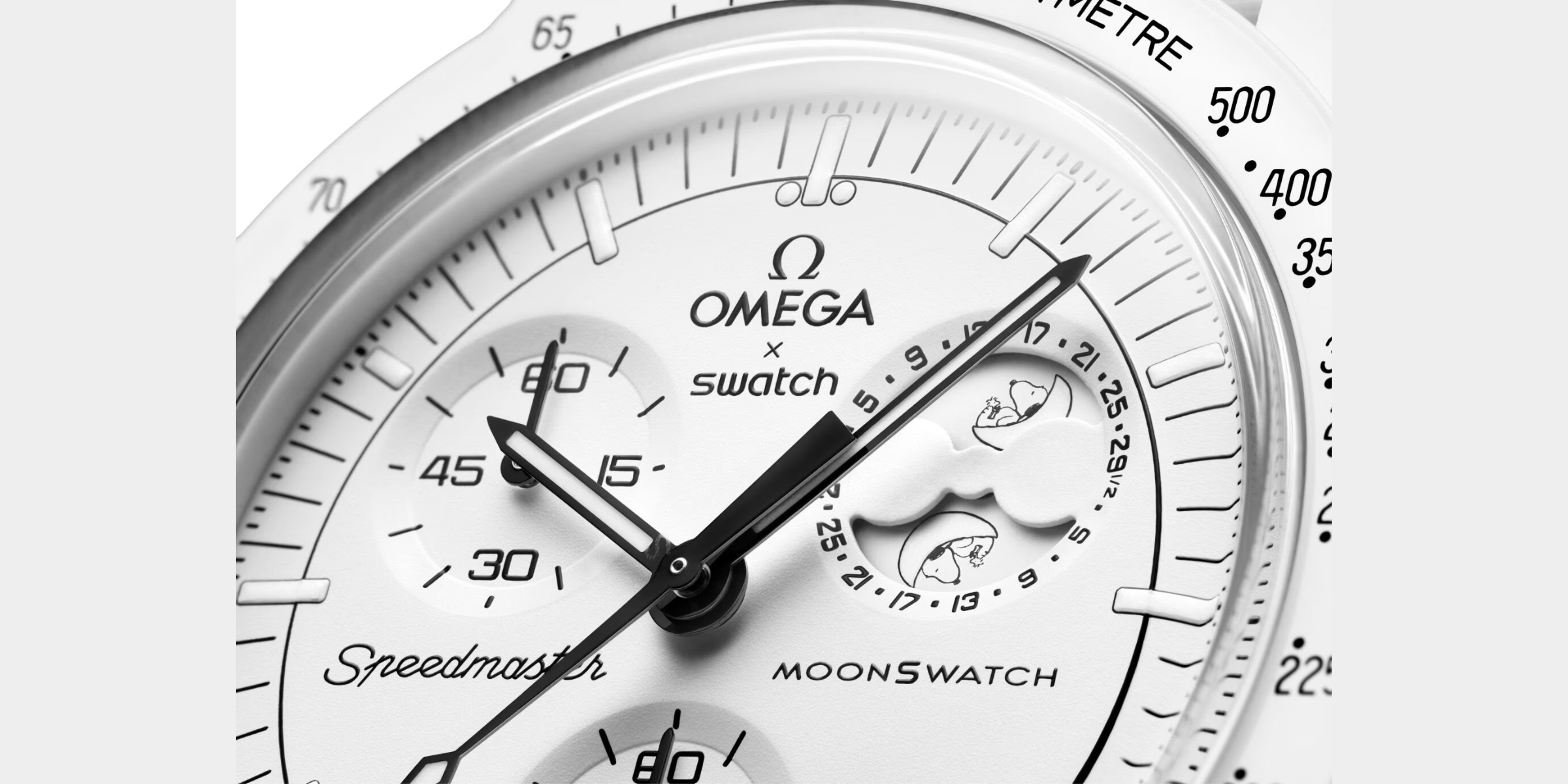 Os relógios MoonSwatch são feitos em Bioceramic, uma combinação exclusiva de cerâmica e bioplástico que une leveza, resistência e conforto.